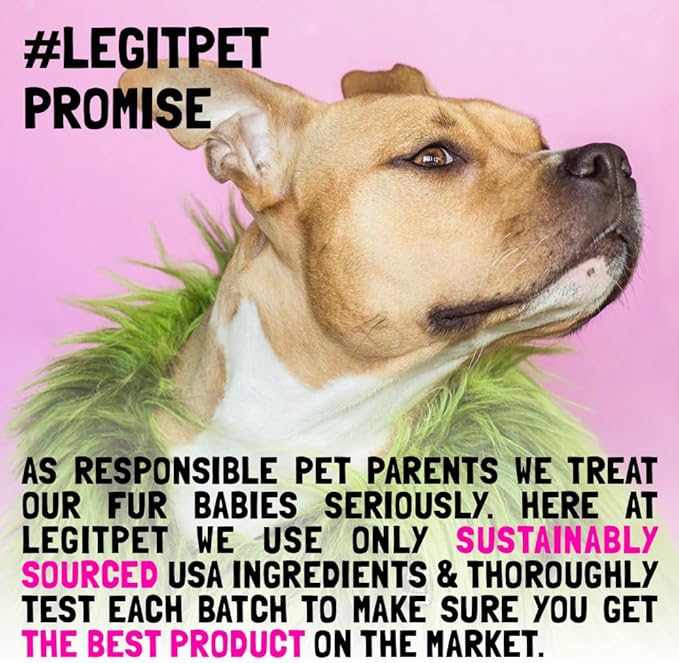 - Here at LEGITPET we use only sustainably sourced USA ingredients & thoroughly test each batch to make sure you get the best product on the market.