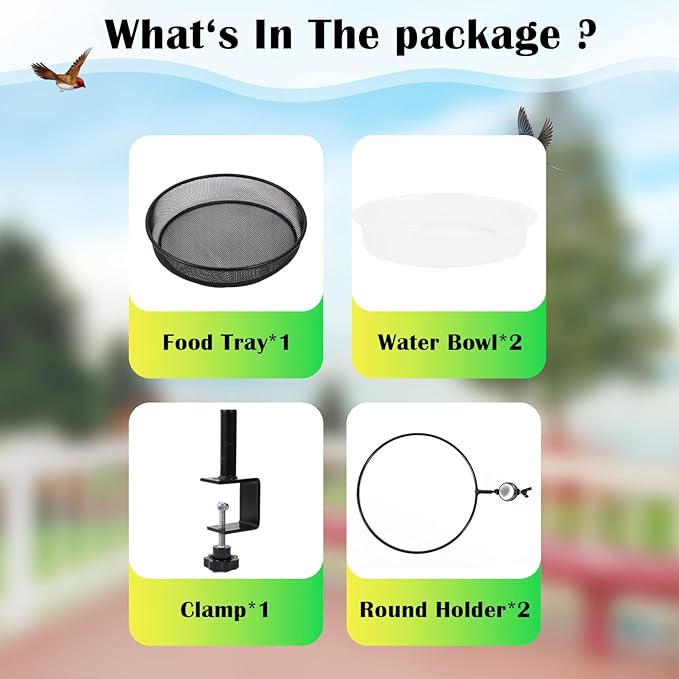 - Durable Material: The balcony bird feeder is made of heavy duty thick steel, rust-proof after special surface treatment, maintain long-term durability; anti-rust clamps and rotating screws can be installed safely; the high quality plastic transparent bowl is easy to clean, and the transparent color improves the visibility of the clear water and attracts wild birds; the other side bird feeder tray is made of heavy duty steel mesh and durable.