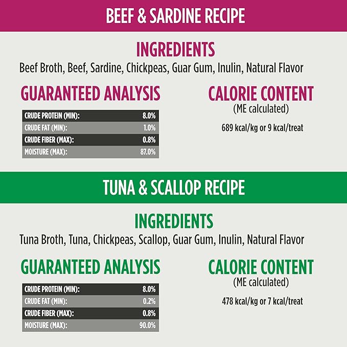 - VARIETY PACK RECIPE - Premium cat treats with a high-moisture content to promote your feline friend's hydration throughout the day. Pack of 10, 0.5 Oz each.