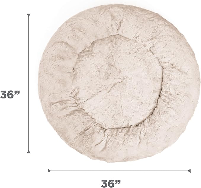 Best Friends by Sheri Original Calming Donut Dog and Cat Bed, Lux Faux Fur, Oyster, (36in x 36in) - Anxiety Relief for Pets Up to 100 lbs