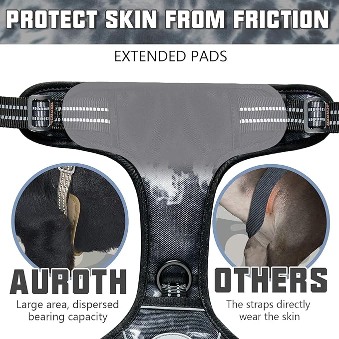 AUROTH Tactical Dog Harness for Small Medium Large Dogs No Pull Adjustable Pet Harness Reflective K9 Working Training Easy Control Pet Vest Military Service Dog Harnesses (L, Black Ink)
