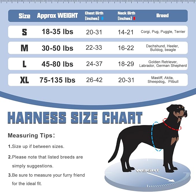 - _uaranteed Satisfaction Be sure to check our sizing chart for the perfect fit. Against any quality issues or questions about our dog vest harness, don't hesitate to reach out to us. We are here to assist you and ensure your complete satisfaction.