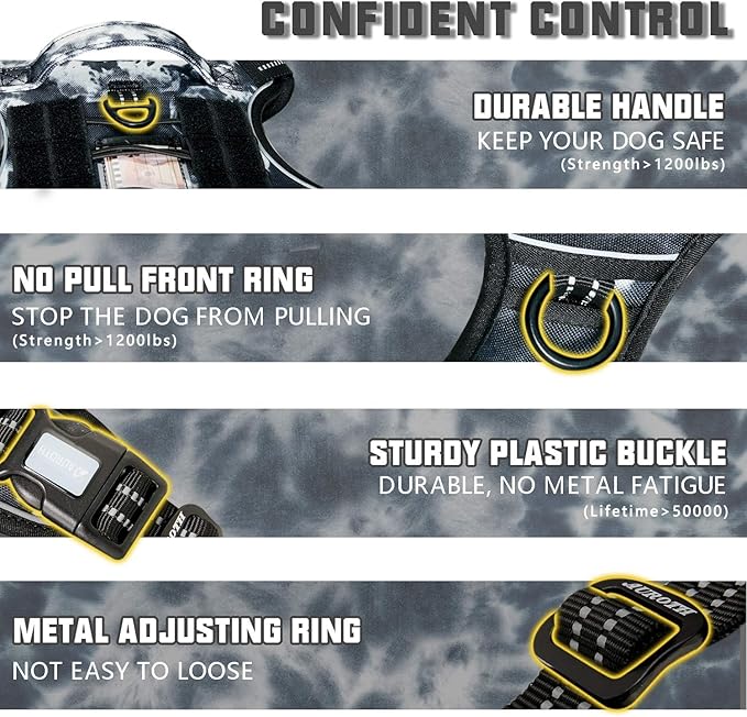 AUROTH Tactical Dog Harness for Small Medium Large Dogs No Pull Adjustable Pet Harness Reflective K9 Working Training Easy Control Pet Vest Military Service Dog Harnesses (XL, Black Ink)