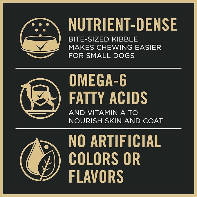 - Complete and balanced adult small dog food that's high in protein for dogs to meet the needs of highly active small dogs. Nutrient-dense, bite-sized kibble makes chewing easier for small dogs