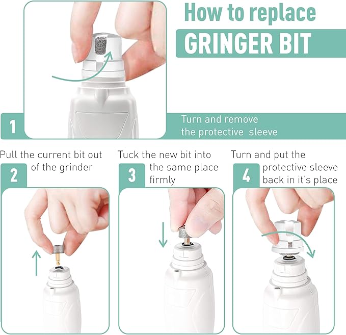 • Easy to use; to replace the dog nail grinder bit, simply pull out the old one and push in the new