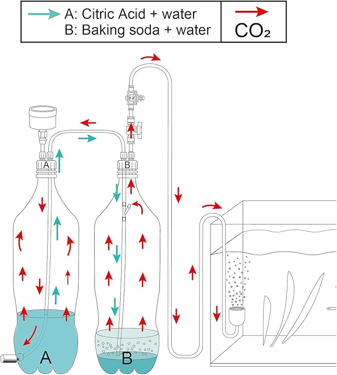 - The DIY CO2 Kit provides an excellent method of deploying the citric acid / baking soda solution to generate CO2 for plants' growing in the aquarium. Easy to operate and designed for low cost planted tank use.