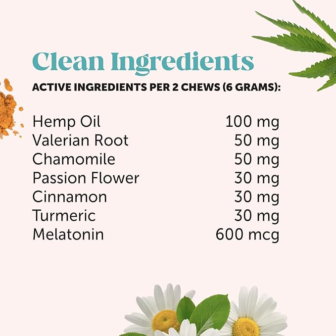 - Made With Natural Ingredients Like Hemp, Melatonin, Chamomile and Valerian Root: Pet Honesty's Dental Sticks are a natural and effective choice to promote calmness while cleaning teeth. Hemp Calming Fresh Sticks are made with natural ingredients that not only promote dental health but also help ease separation anxiety, promote calm behavior and help reduce stress.