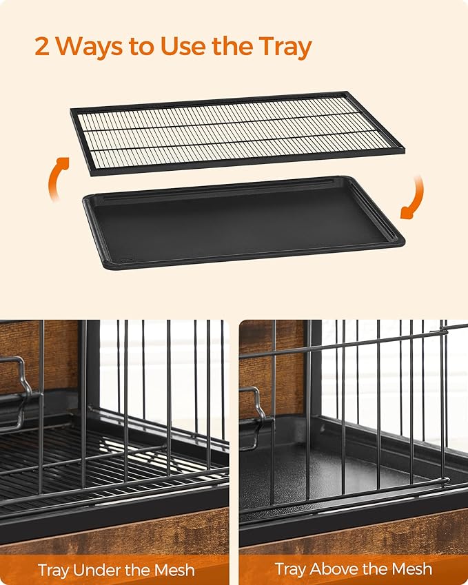- [2 Ways to Use the Tray] Put the tray under the bottom mesh to catch crumbs, fur, and dirt, keeping your dog's place clean without dirtying your floor, or place the tray above the mesh to offer your dog a flat, comfortable surface_t's up to you