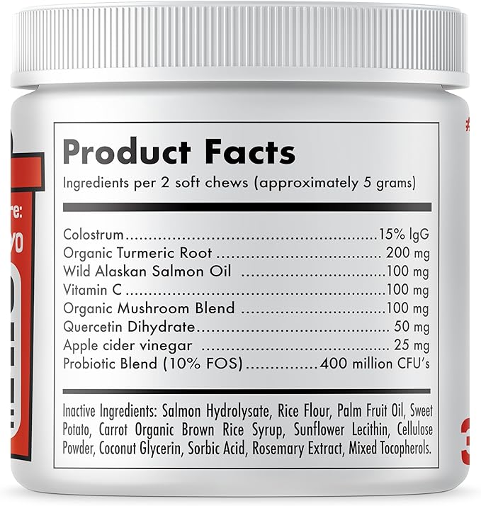 Allergy Relief Chews for Dogs & Immune & Digestive Supplement with Wild Salmon Oil Kelp Colostrum Turmeric Probiotics & Bee Pollen for Seasonal Allergies Anti Itch, Skin Hot Spots 30 Soft Treats