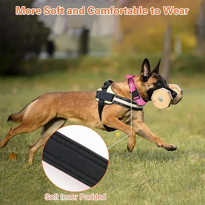 KCUCOP Tactical Dog Collar, Heavy Duty Dog Collar with Handle and Metal Buckle, Military Thick Dog Collars for Medium and Large Dogs(Pink-L-Reflective, 1 Patch)