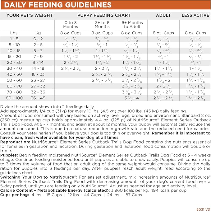 - CONTAINS: (1) 24LB Bag of NutriSource Element Series Outback Trails Dry Dog Food
