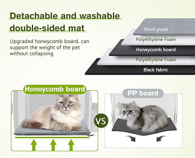 - [Premium Materials]: Our dog backpack is made of Oxford fabric and 210D backing, scratch-resistant and wear-resistant. The internal steel wire frame ensures stability and prevents collapsing. The bottom of the cat travel bag is made of different materials on both sides, one side for keeping warm and the other for cool, flexible to use with the temperature change, and the easy disassembly is more convenient for cleaning.