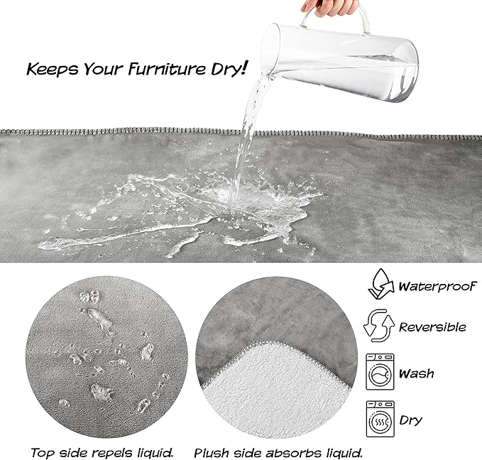 Waterproof Pet Blanket - 60x70-inch Reversible Throw Protects Couch, Car, Bed from Spills, Stains, and Fur - Dog and Cat Blankets by Petmaker (Gray)
