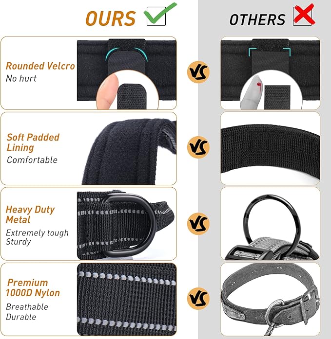 - Premium Material: AUBELL tactical dog collar is a classic, yet stylish collar composed of high density nylon which filled with soft padding, comfortable, pliable, lightweight and elegant.