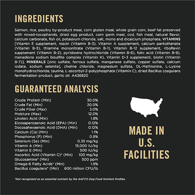 • Performance dog food made with glucosamine and EPA, and Omega-3 fatty acid for joint health and mobility