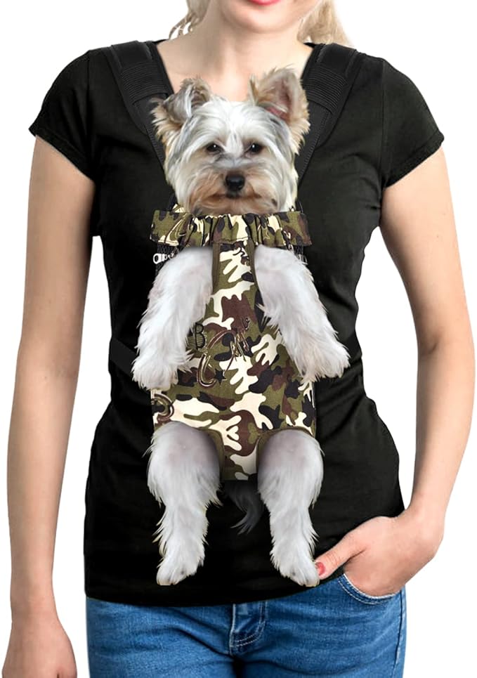 YUDODO Pet Dog Carrier Backpack Adjustable Dog Front Carrier, Legs Out Easy-Fit Dog Travel Backpack Carrier for Hiking Camping for Small Medium Dogs Cats and Rabbits (Medium), Camouflage Green
