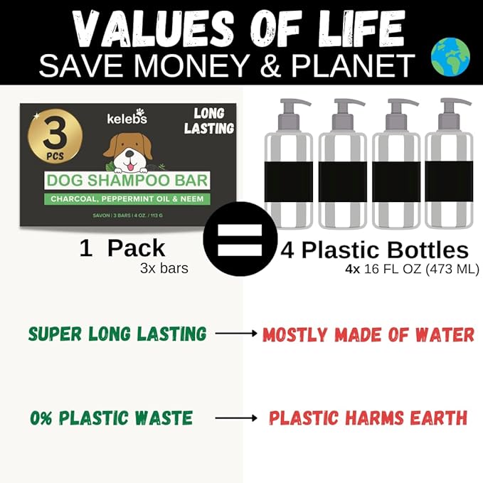- ENVIRONMENT-FRIENDLY SHAMPOO BAR Ditch plastic bottles and reduce waste with our dog shampoo bar, which lasts 3X longer than liquid shampoos. No shaking needed, no extra packaging— kinder to the planet and your pet’s coat.