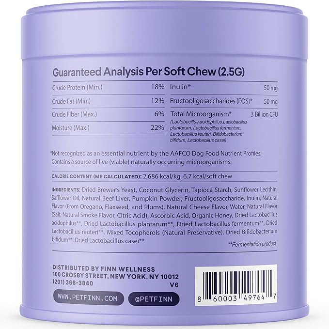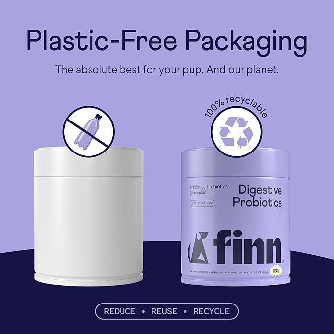 Finn Digestive Probiotics for Dogs - Complete Digestive System Support with Pumpkin, Prebiotics, & Live Probiotics - Vet Recommended & Made in The USA - 90 Soft Chews