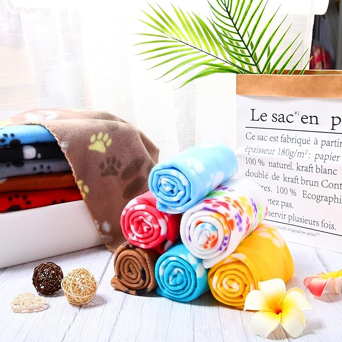 Tegeme 12 Pieces Fleece Blankets for Pets Dog Puppy Paw Print Cat Bedding Cover Blanket for Small Animals Pig Cage Liner Sleep Mat Pad Kitten Soft Warm(Cute Style,39 x 28 Inches)