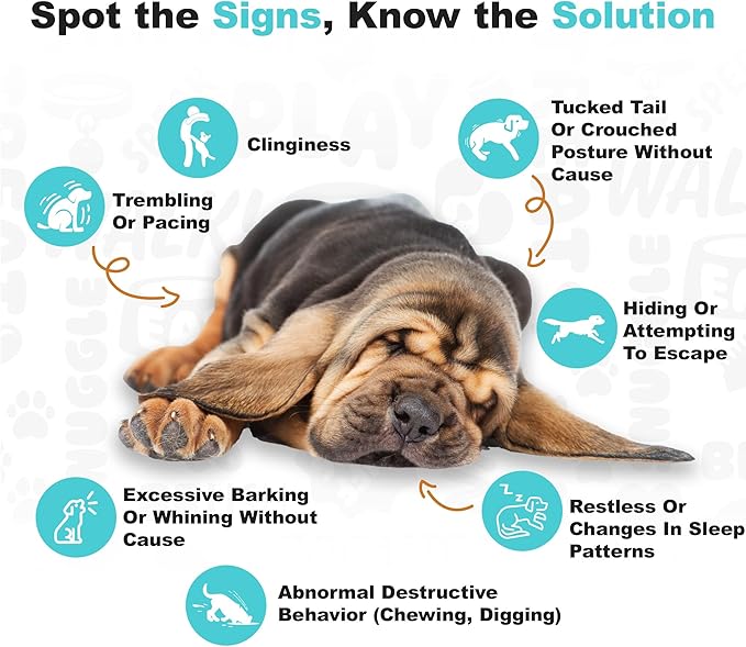Calming aids and routines for stress relief. Chews, diffusers, and snug beds.
