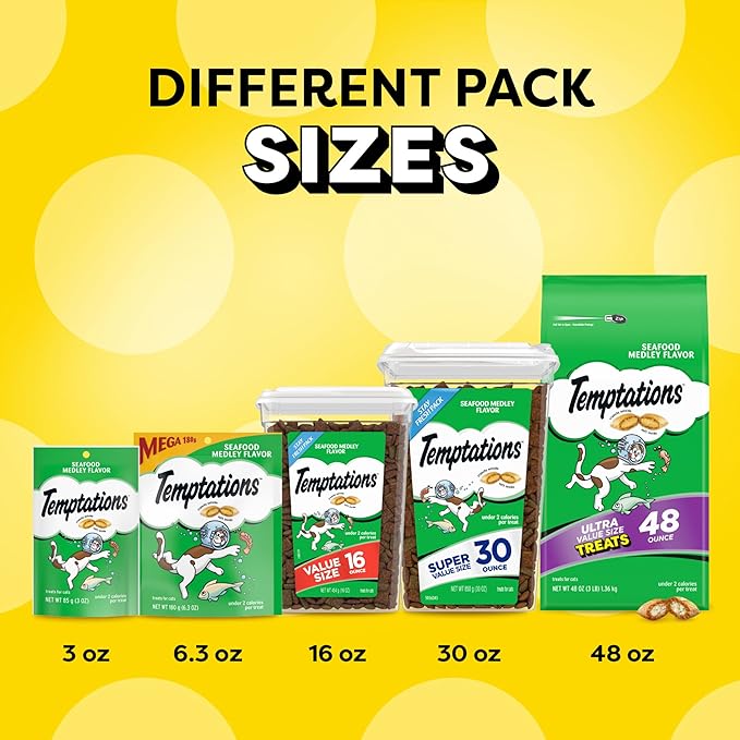 Temptations Classic Crunchy and Soft Cat Treats, Seafood Medley Flavor, 48 oz. Pouch