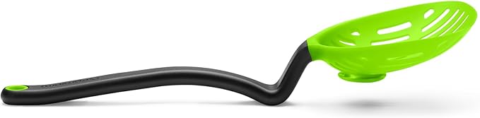 Dreamfarm Lestrain 2-in-1 Drip-Catching Sit-Up Slotted Cooking Spoon Scoop & Strainer - 11" Green
