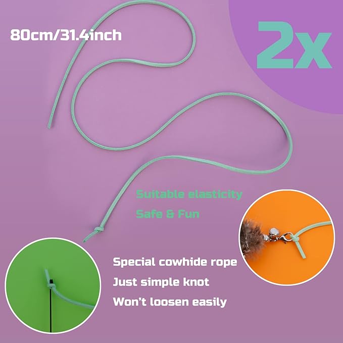 - 【Simulate Fishing】 Our toys are designed inspired by fishing. Elastic wire wand, cowhide rope and attractive feather bait(for cat). You can try to catch your cat as a fish. They will take the bait, chase it, and enjoy the fishing with you.