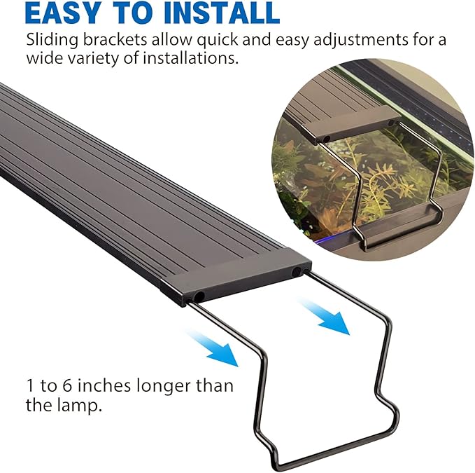 - Extendable Brackets: The led aquarium light comes with extendable bracket to fit for more fish tanks. Extendable brackets allow easy and fast adjustment for installation.