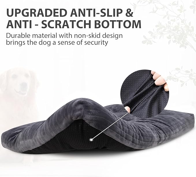 - Non-Slip Pad Design - This dog crate bed is equipped with upgraded ANTI-SLIP & ANTI-SCRATCH bottom, prevents your dog kennel pad from moving when your pet steps on or off, they will feel secure and happy.
