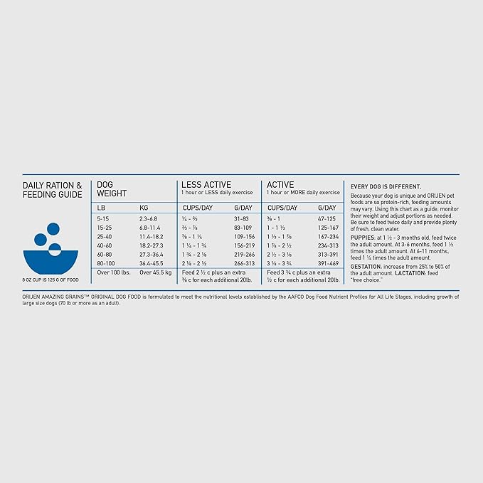 • One (1) 4lb bag of ORIJEN AMAZING GRAINS Original Dry Dog Food