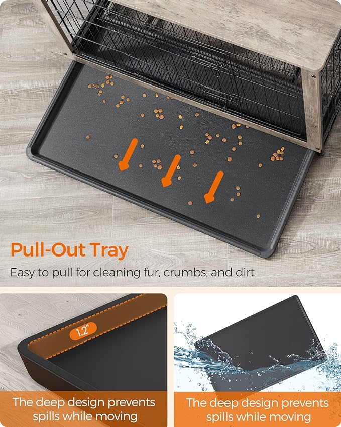 - [Sturdy and Chew-Resistant] Made with durable particleboard and steel, this piece of dog furniture is sturdier and more chew-resistant than wooden dog crates, offering a lasting, stable, and safe retreat for your fur friend