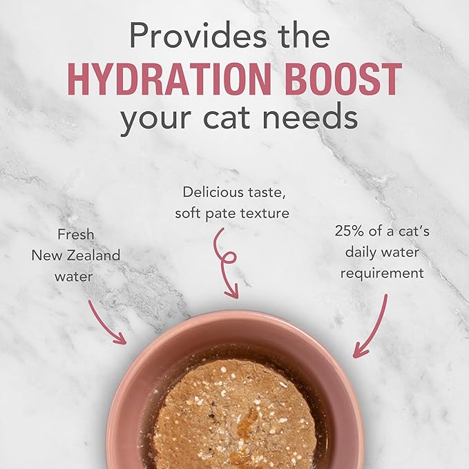 - Hydration Boost: Our Feasts are free of any binders, gum or gelling agents. The only thing we add is fresh New Zealand water for added hydration. Wet food helps keep them well-hydrated, which supports kidney and urinary tract health