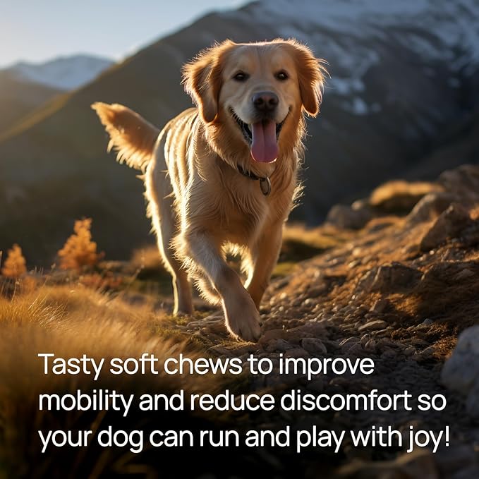 • IMPROVED MOBILITY & REDUCED DISCOMFORT - Our all-natural supplement improves mobility and reduces discomfort so your pup can run and play with joy.