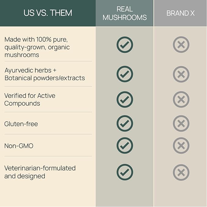 - Quality & Transparency: Backed by 40+ years of expertise, these chews are made with 100% fruiting-body mushroom extracts. Crafted in the USA for clean supplementation, Real Mushroom dog supplement offers the quality pet parents rely on.