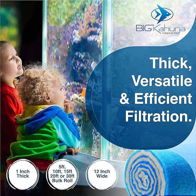 Big Kahuna Aquarium Filter Floss Rolls – 12-inch Pond and Aquarium Filter Media – 1-inch Thick Wet/Dry Aquarium Filter Pad – Bonded Filter Media Pad for Freshwater or Marine Aquariums, Ponds – 30ft