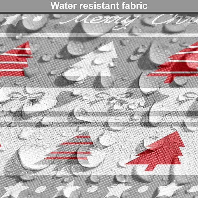 Ambesonne Christmas Dog Crate Cover, Xmas Border Deers Trees and Merry Christmas Lettering Bows Bells Image, Easy to Use Pet Kennel Cover for Cats & Medium Dogs, 24 Inch, Grey White and Red