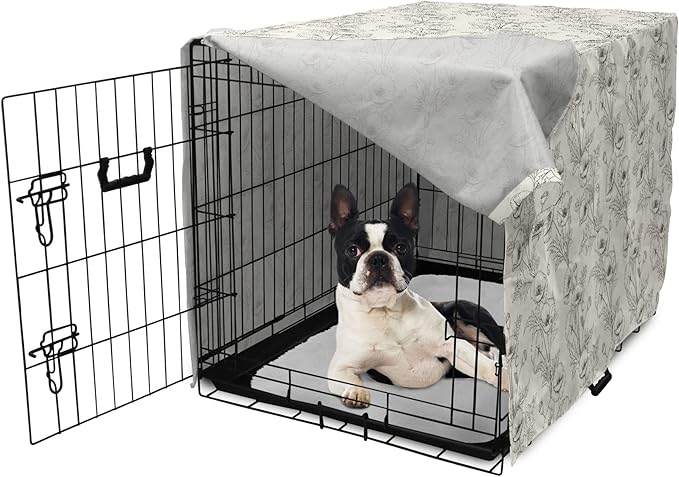 Ambesonne Botanical Dog Crate Cover, Floral Theme Poppy Flowers and Buds Pattern Doodle Style Garden Leaf Motifs, Easy to Use Pet Kennel Cover for Small Dogs Puppies Kittens, 22 Inch, Dark Brown White