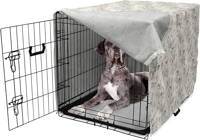 Ambesonne Botanical Dog Crate Cover, Floral Theme Poppy Flowers and Buds Pattern Doodle Style Garden Leaf Motifs, Easy to Use Pet Kennel Cover for Medium Large Dogs, 48 Inch, Dark Brown White