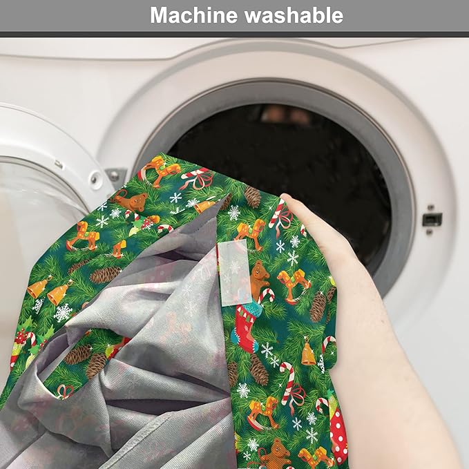 Ambesonne Christmas Dog Crate Cover, Xmas Accessories Stockings Candies Horse Teddy Bear on Pine, Easy to Use Pet Kennel Cover for Medium Large Dogs, 42 Inch, Green Brown
