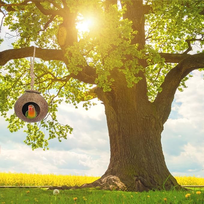 - 【Application】Coconut bird houses is a good coconut hideaway for bird cage,can be used as coconut hide for bird cage,bird breeding nest,budgie house,bird shell bird nest,coconut shell bird house,bird shell nest,bird coconut nest,hanging coco birds nest,coconut nest for birds,parakeet coconut hut,parakeet coconut houses,coconut for bird,coconut for bird cage,coconut for parakeet