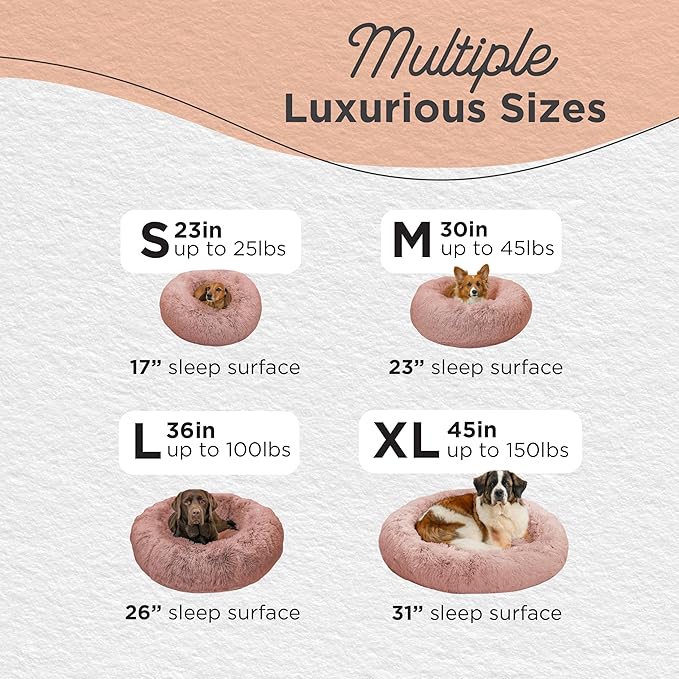 - Calming Dog Bed: 23-inch donut cuddler provides a cozy haven designed to help soothe anxiety and stress in small dogs and cats up to 25 lbs; ideal for breeds such as French Bulldogs, Dachshunds, Yorkies, Terriers, Shih Tzus, Chihuahuas, and toy breeds