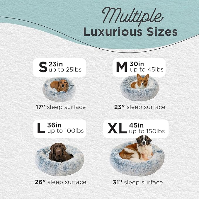 - Calming Dog Bed: 23-inch donut cuddler provides a cozy haven designed to help soothe anxiety and stress in small dogs and cats up to 25 lbs; ideal for breeds such as French Bulldogs, Dachshunds, Yorkies, Terriers, Shih Tzus, Chihuahuas, and toy breeds