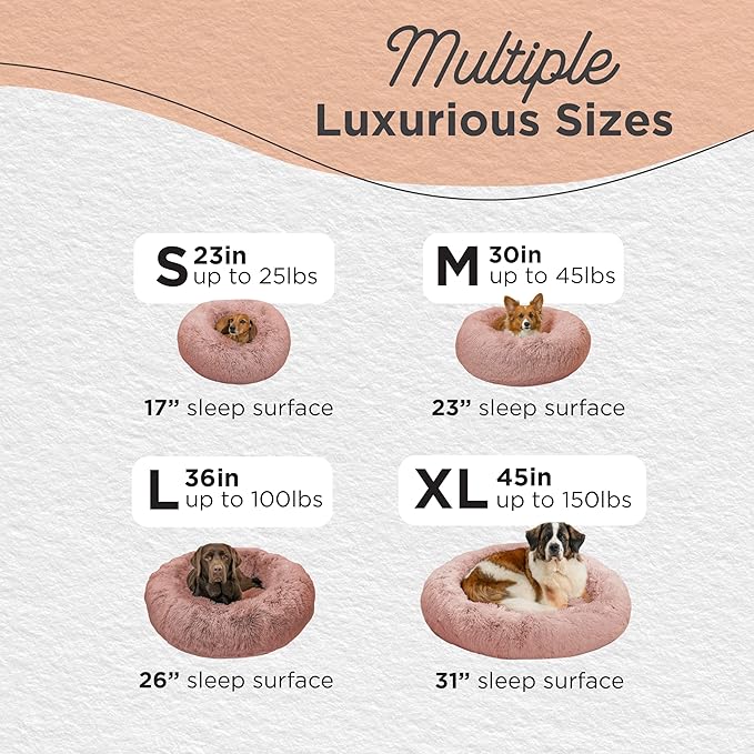 Best Friends by Sheri Original Calming Donut Dog and Cat Bed, Shag Faux Fur, Dusty Rose, XL (45in x 45in) - Anxiety Relief for Pets Up to 150 lbs