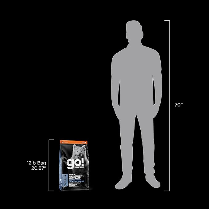 Go! Solutions Weight Management + Joint Care, Grain-Free Dry Dog Food, Chicken Adult and Senior Recipe, 12 lb Bag