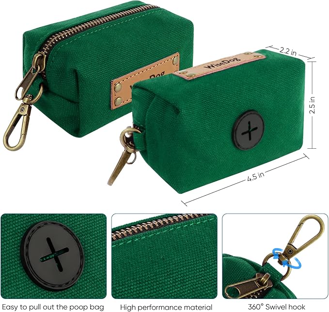 Wisedog Dog Collar and Leash Set, Waterproof Adjustable Puppy Collars with Cute Tag 6FT Dog Leash with Poop Bag for Small Medium Large Dogs (S, Deep Green)