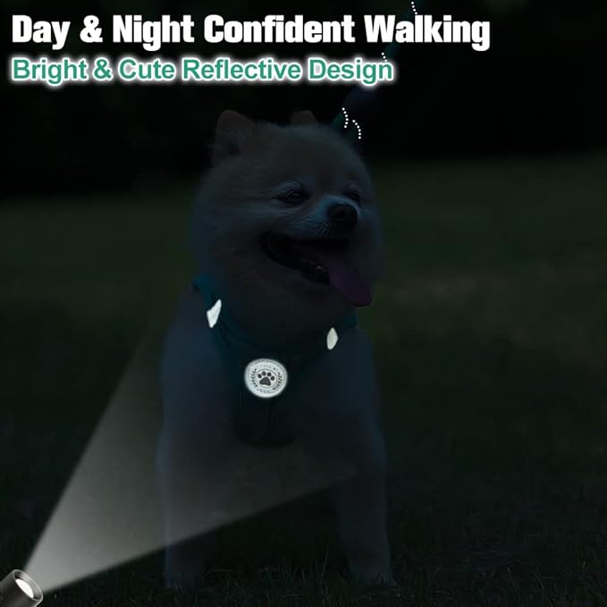 BEAUTYZOO Small Dog Harness and Leash Set,Step in No Chock No Pull Soft Mesh Dog Harnesses Reflective for Extra-Small/Small Medium Puppy Dogs and Cats, Plaid Dog Vest Harness for XS S Pets, Teal S