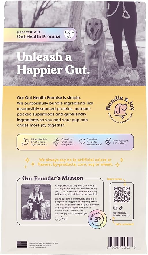 Bundle x Joy Golden Probiotic Dog Food Dry, Chicken, 4lb Bag, Allergy and Gut-Friendly Adult Kibble for Digestive Health with Cage-Free Chicken, 20 Plant Based Superfoods, Beef and Grain Free