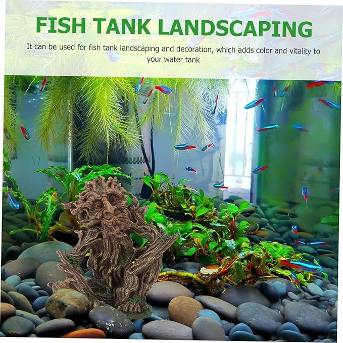 Zerodeko Fish Tank Tree Trunk Decoration, Aquarium Tree face décor Ornaments for Fish Tank, Resin Old Man Figurine for Freshwater Saltwater, Aquarium Betta Fish Decoration