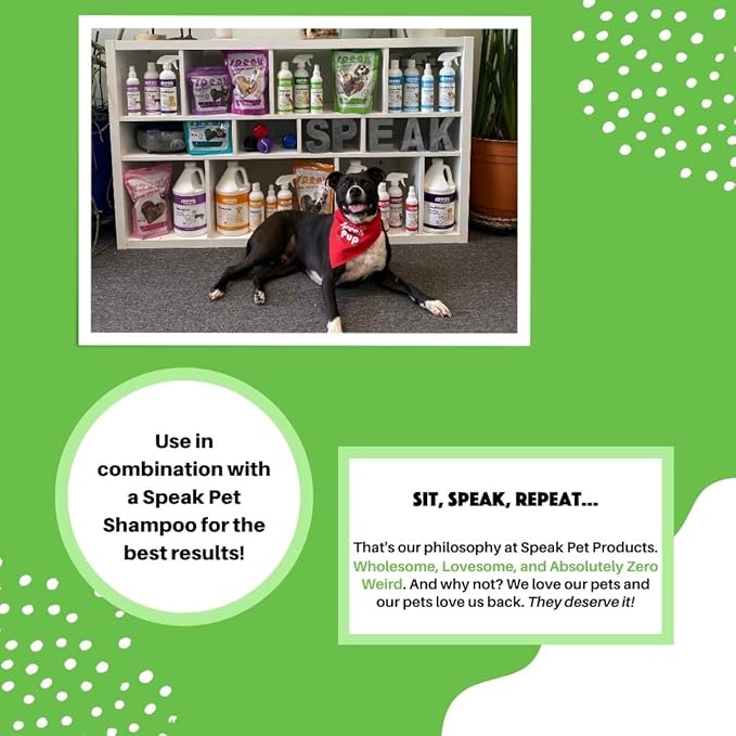 - Contains (1) 17 oz bottle of Speak Pet Products Detergent Free Tea Tree Cream Rinse Conditioner