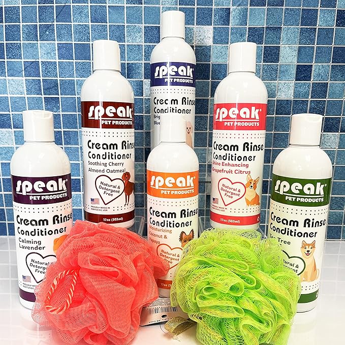 - Contains (1) 17 oz bottle of Speak Pet Products Detergent Free Lavender Cream Rinse Conditioner